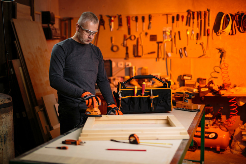 Villager ugaona vibraciona brusilica iz serije alata VLN sa 125W snažnim motorom i radnom površinom od 140 × 140 × 80 mm.