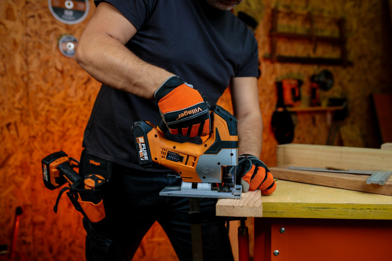 Uređaj je u okviru nove Villager serije uređaja VILLAGER® FUSE™ serije aku alata. Čitava VILLAGER® FUSE™ serija uređaja je okupljena oko jedne baterije i punjača, tj jednu bateriju možete koristiti na svim uređajima iz FUSE aku serije alata. Villager® FUSE™, nova linija proizvoda je opremljena naprednim PC boardom, koji pruža visok nivo zaštite i sigurnosti baterije i samog uređaja. Indikator problema koji je sastavni dio PCB-a štiti uređaj od prekomernog punjenja i pražnjenja, zagrevanja i oscilacija napona.