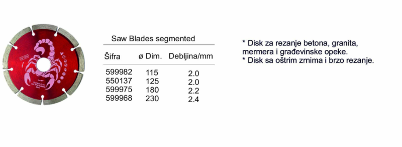 Dijamant ploča fi 115x2.2 Segment Scorpion